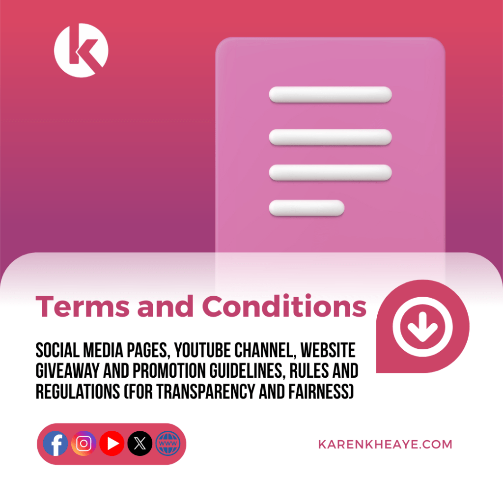 All giveaways and promotions organized by the KheayeFam Facebook Page are open to Philippine residents aged 18 and above. By entering any promotion, participants confirm that they meet these eligibility requirements and agree to these Terms and Conditions.